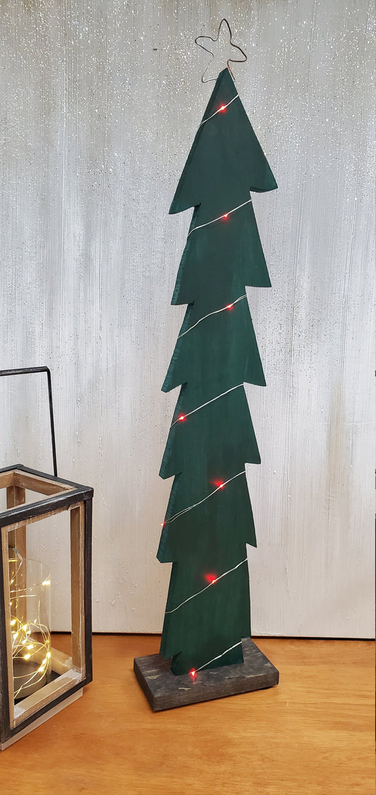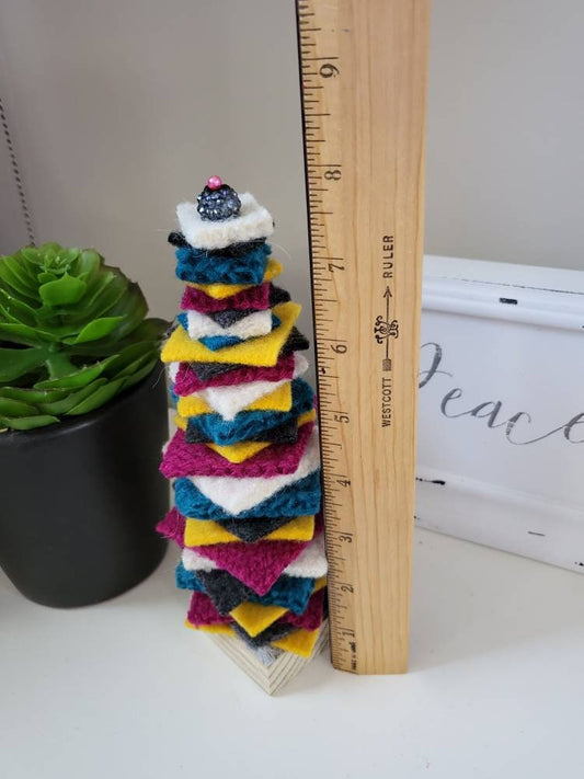 Bead Topped Hand Felted Christmas Tree with Reclaimed Wood Base.