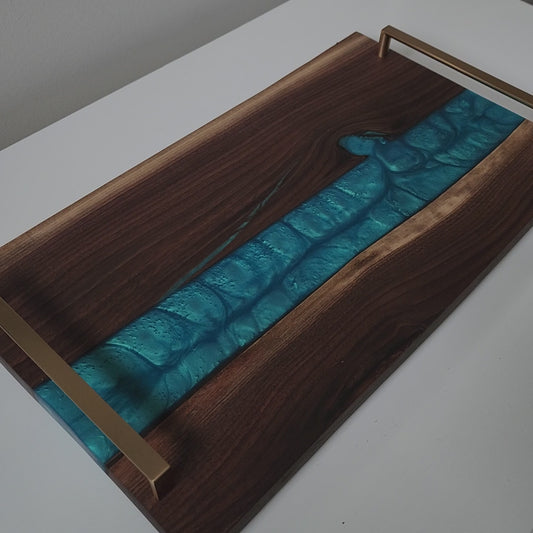 Black Walnut w/ "Blue/Green" Swirled Epoxy Charcuterie Board