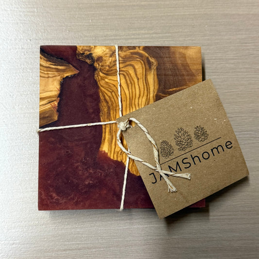 Imported Olive Wood & Epoxy Swirl Coast Set - Savage Red Swirl