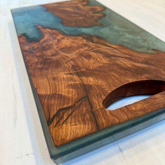 Black Walnut w/ "Blue/Green" Swirled Epoxy Charcuterie Board