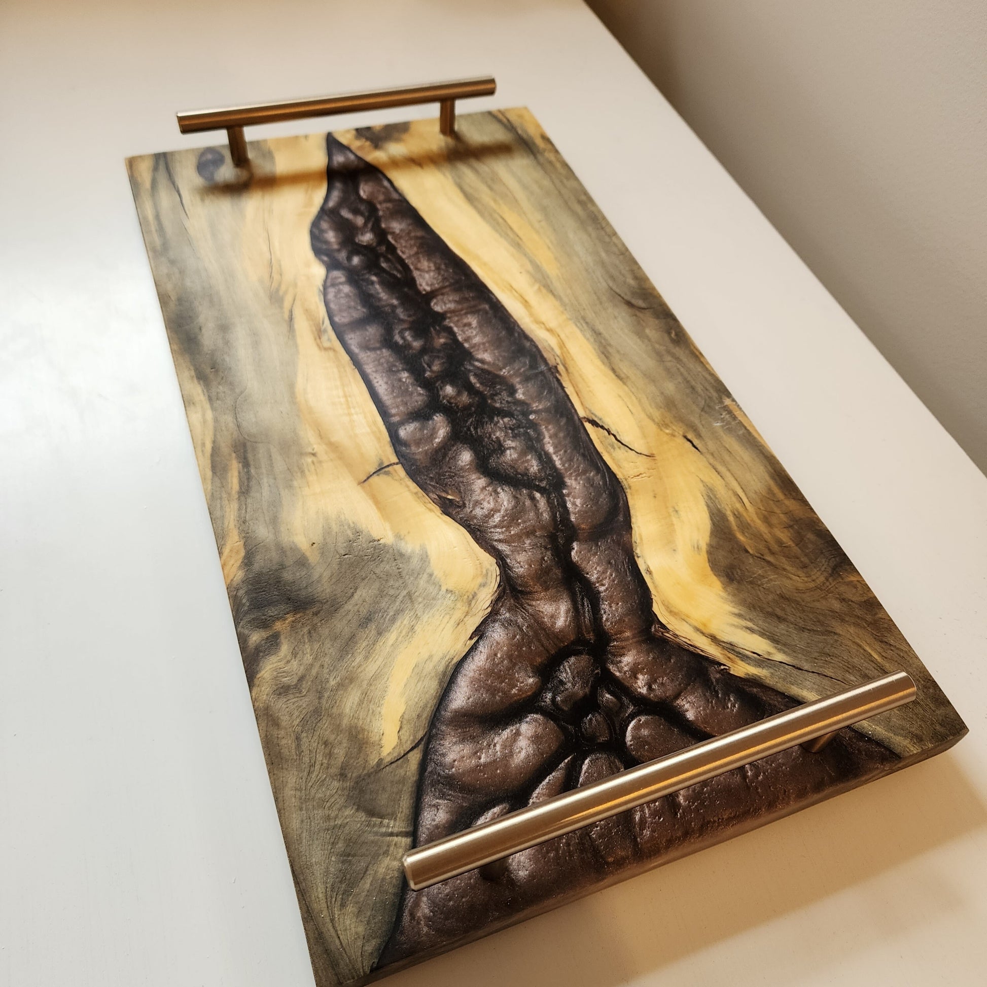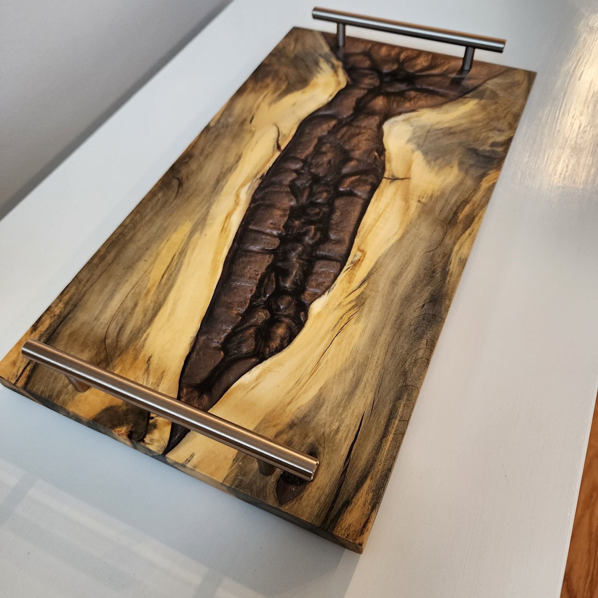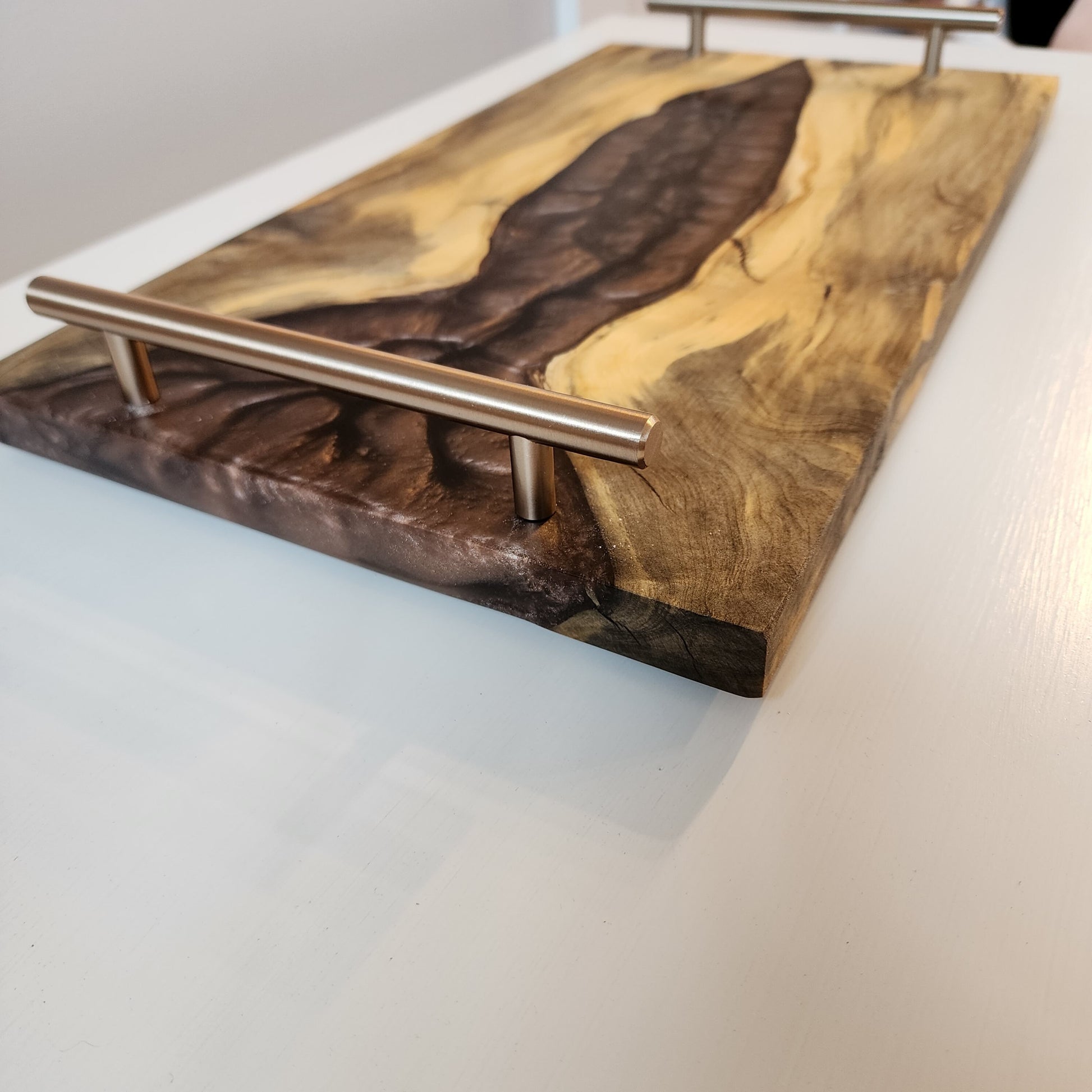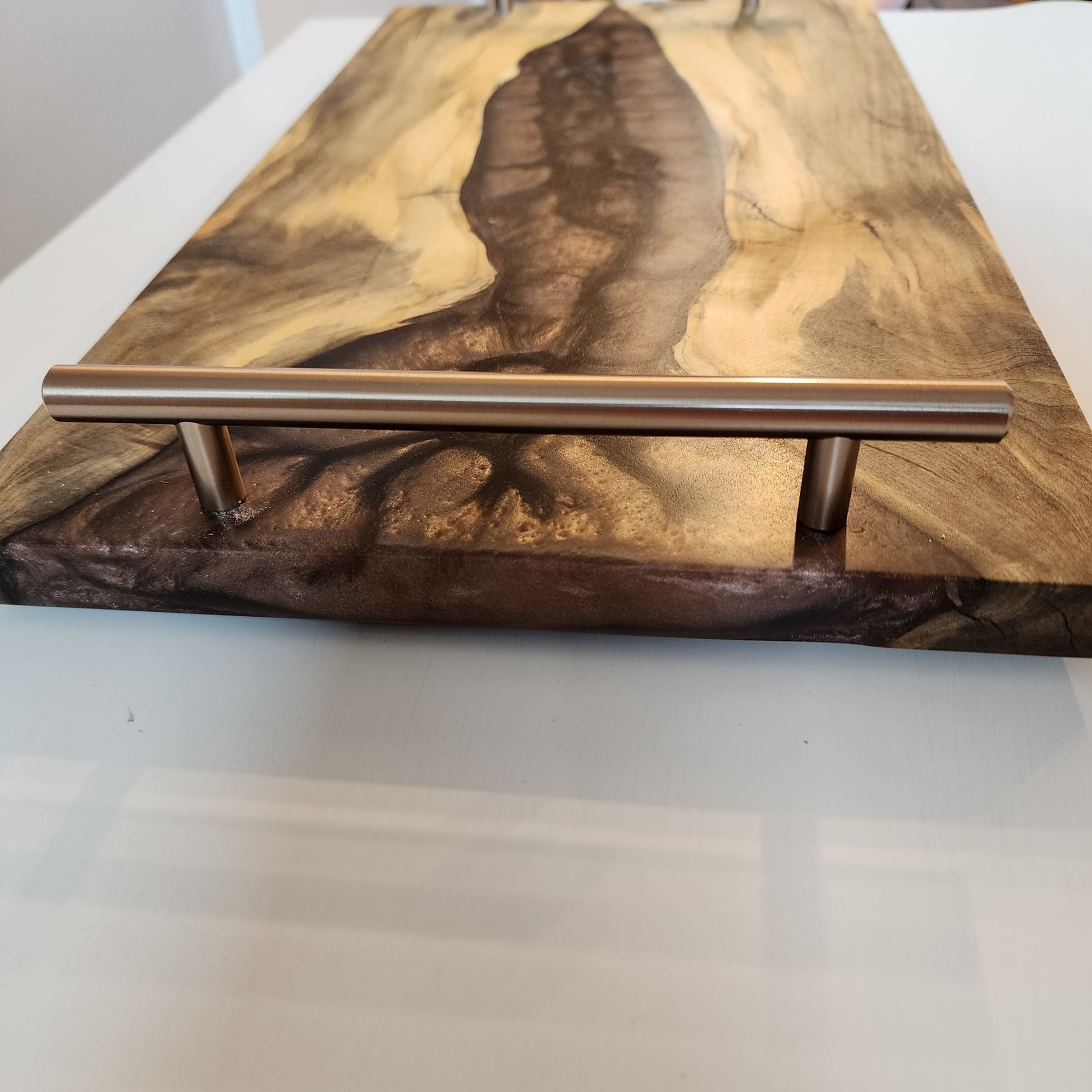 Buckeye Live Edge w/ River of "Satin Coffee" Epoxy. Accented w/ Solid Champaign Bronze Hardware.