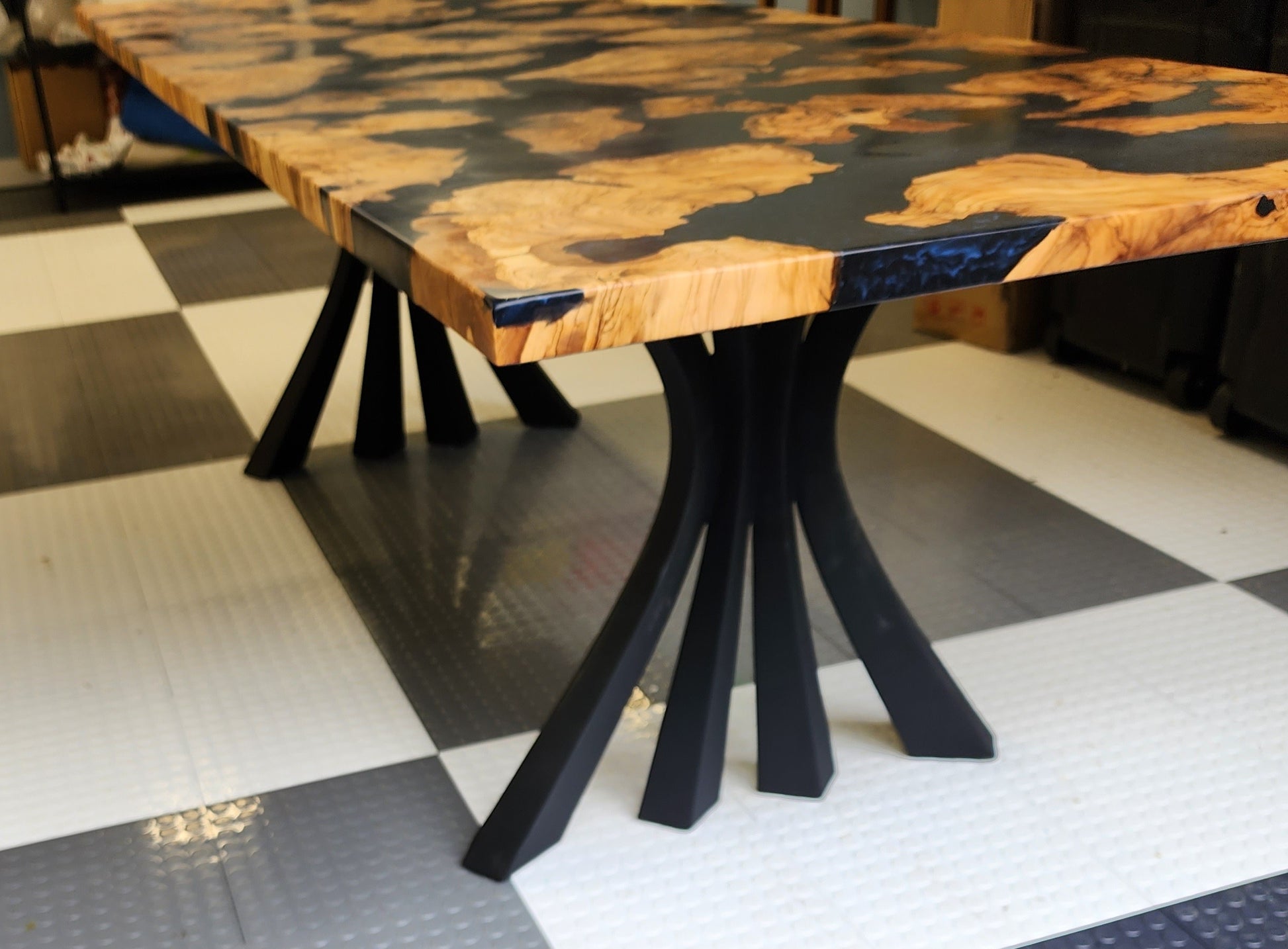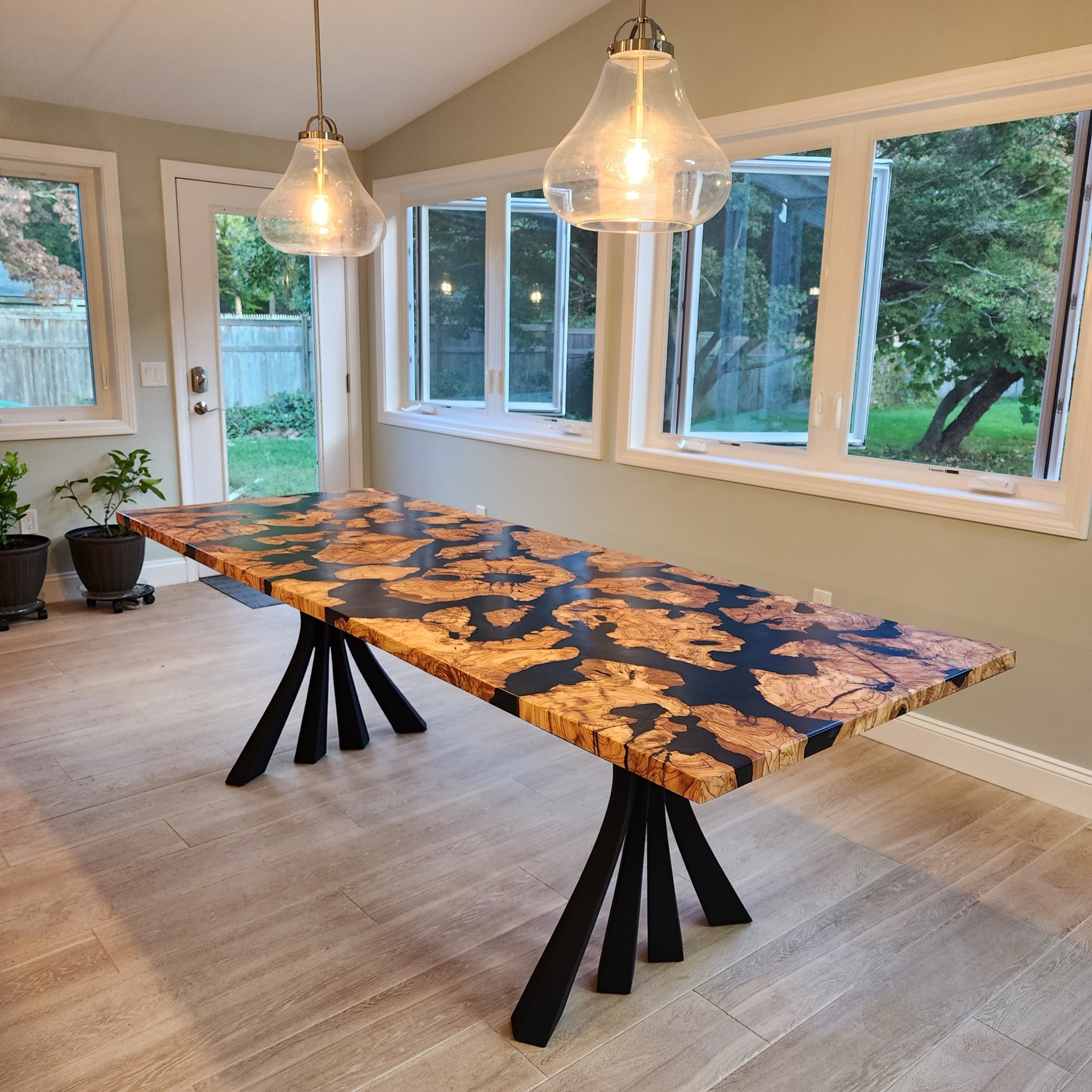 96" x36" Imported Olive Wood w/ Midnight Blue Epoxy Dining Table