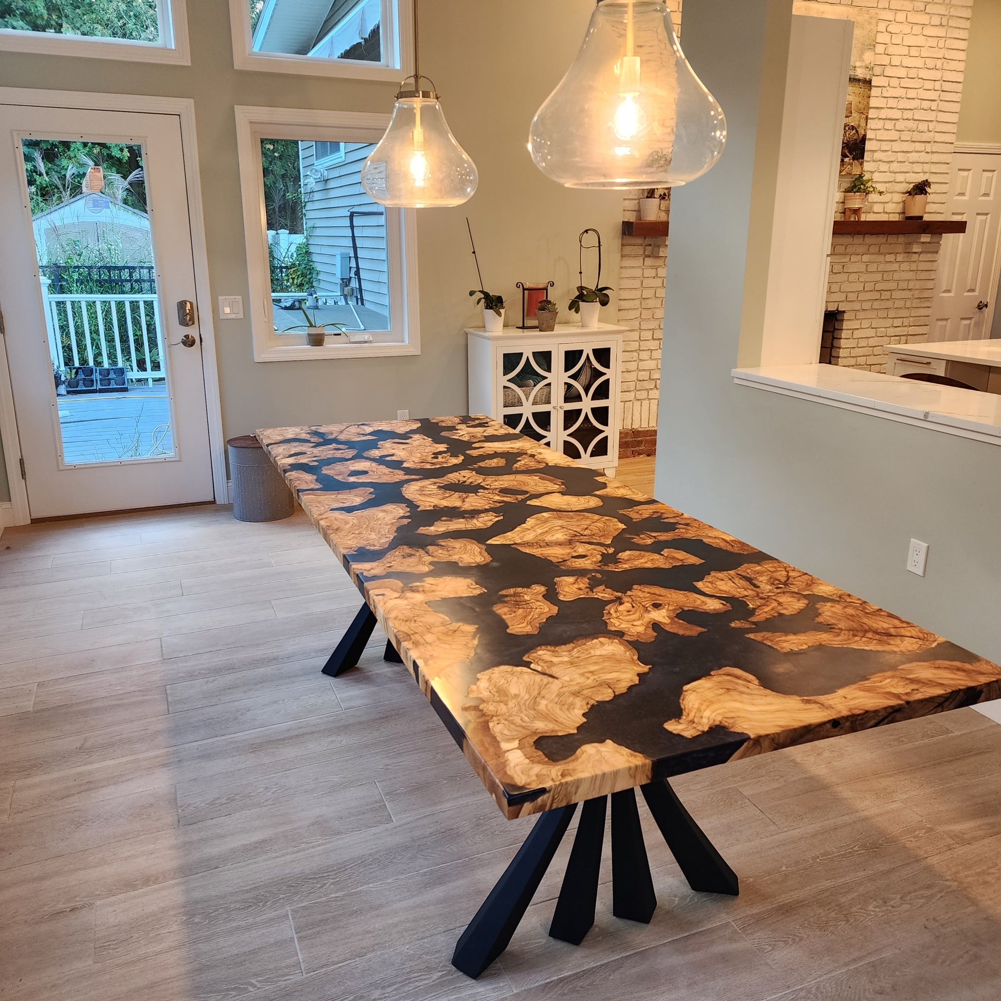 Sold Sample - Imported Olive Wood w/ Midnight Blue Epoxy Dining Table
