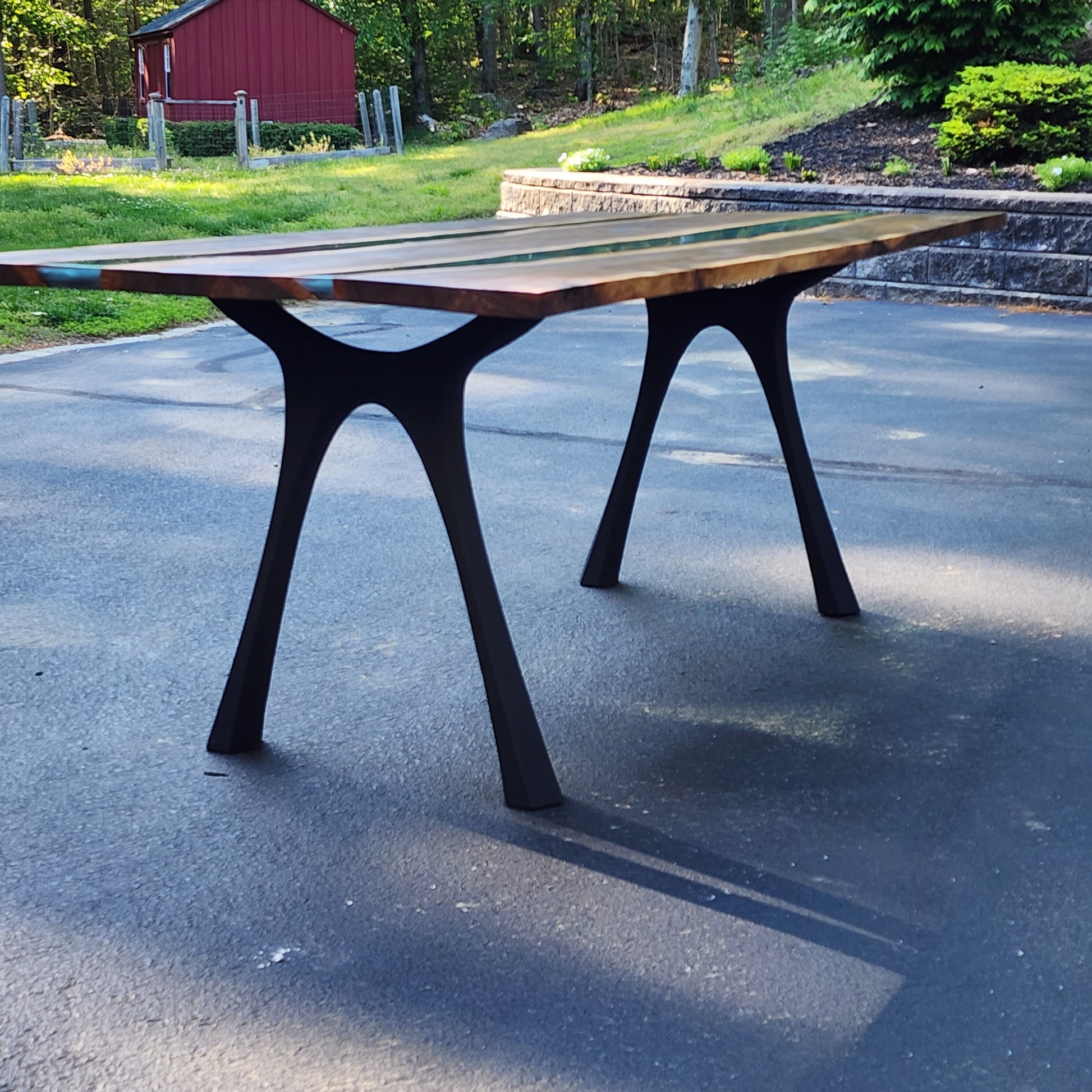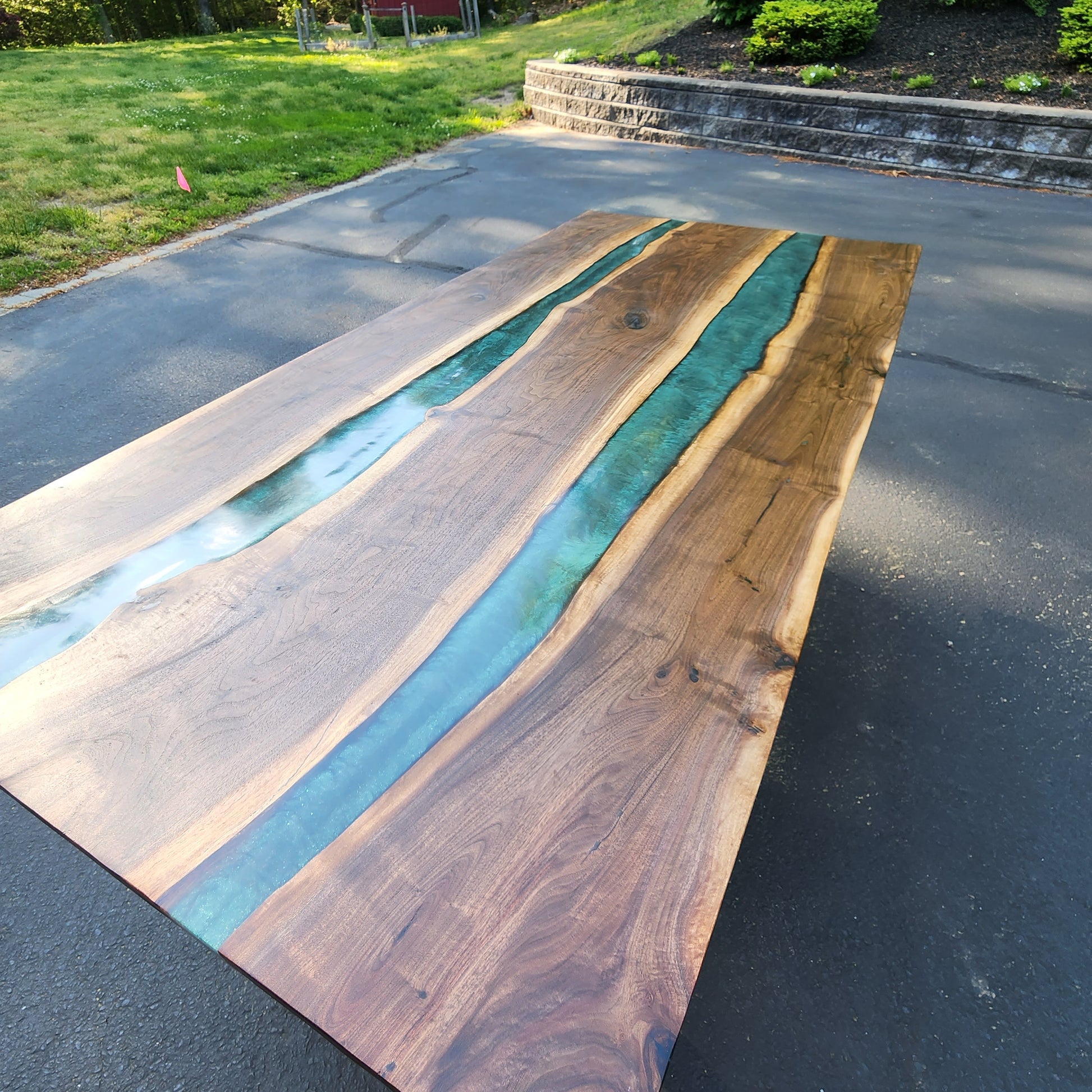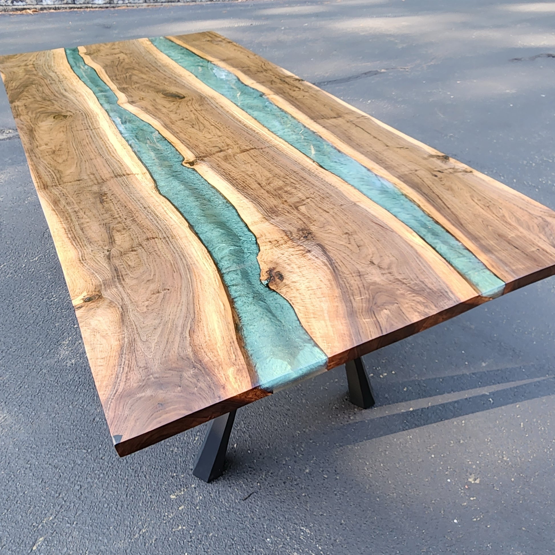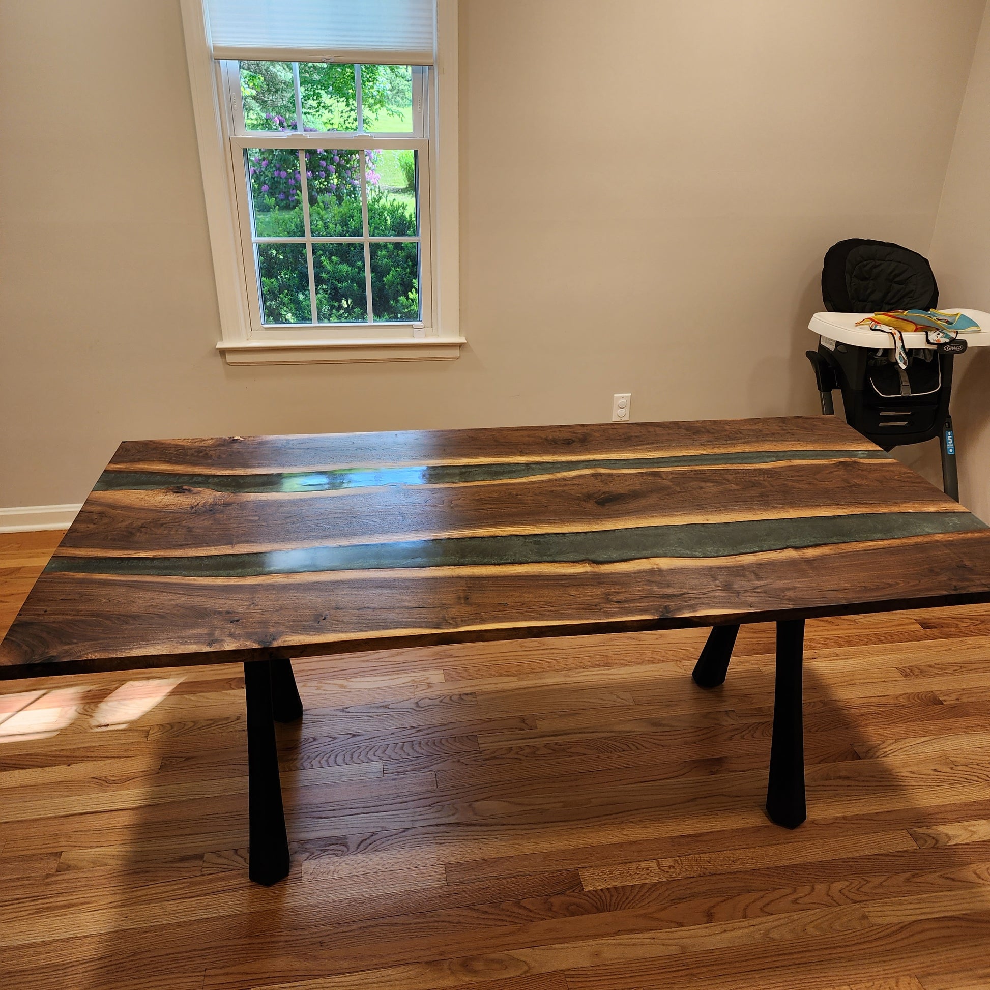 Custom 76"x36" Black Walnut Live Edge Table w/ Emerald Green Epoxy River.