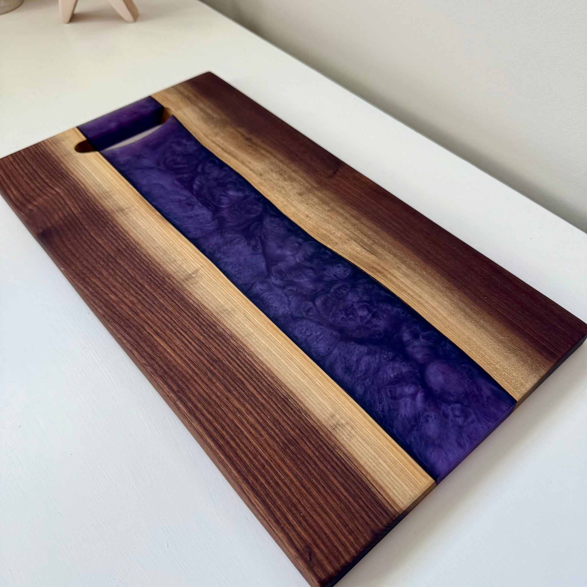 Double Sided Black Walnut & ”Golden Purple Rain” Swirl Charcuterie.
