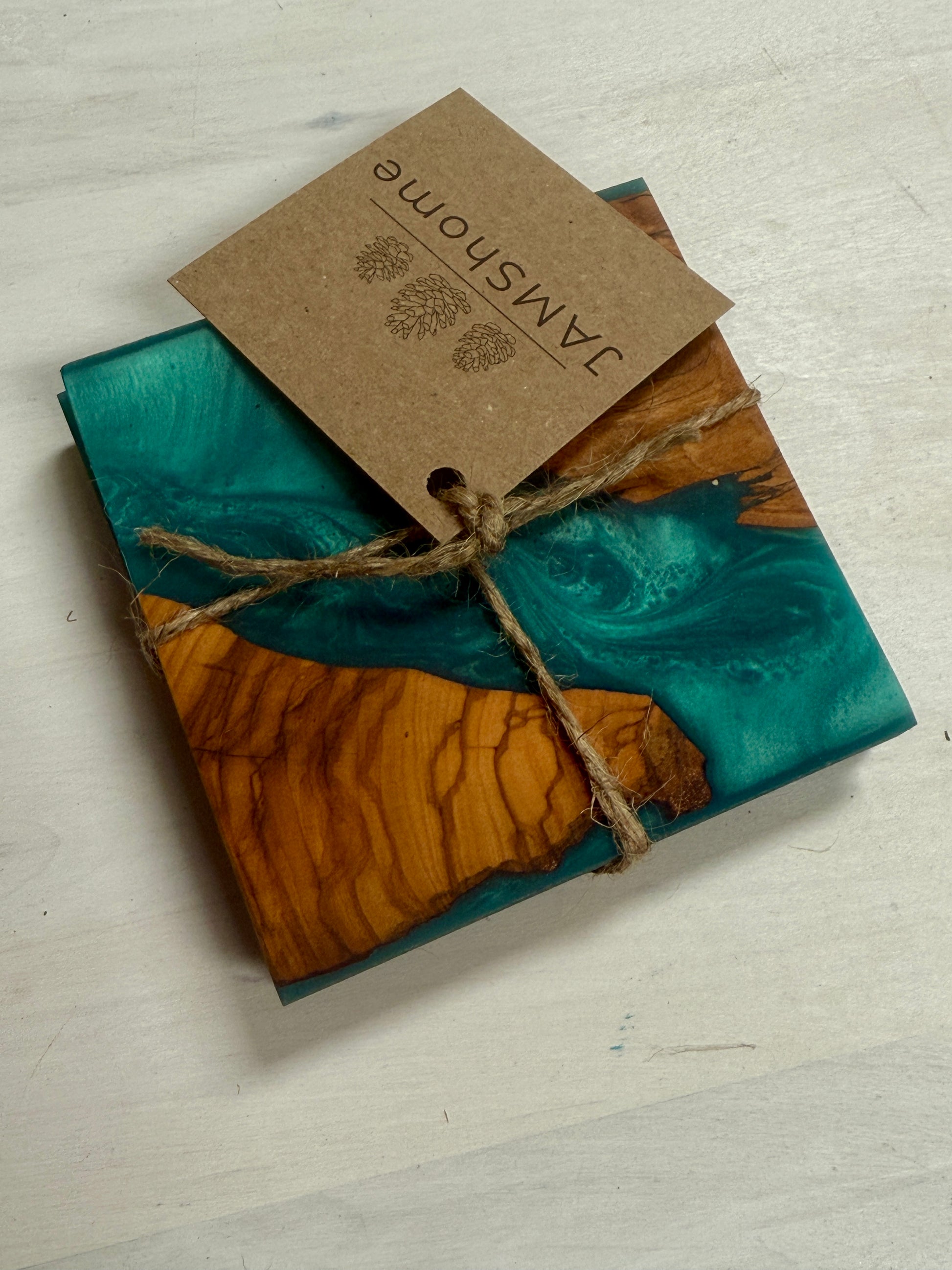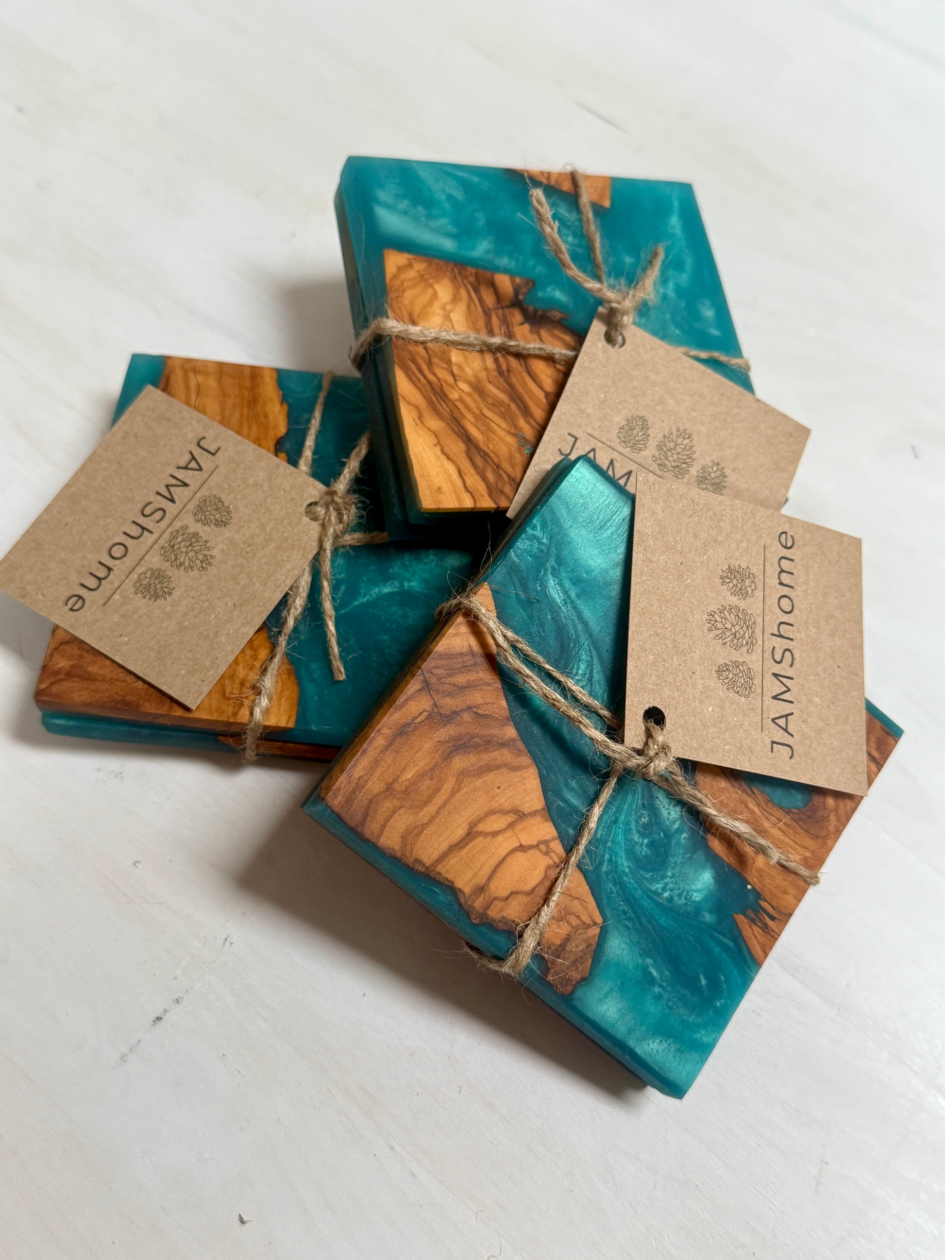 Hand Made Imported Olive Wood & Epoxy Swirl Coast Set