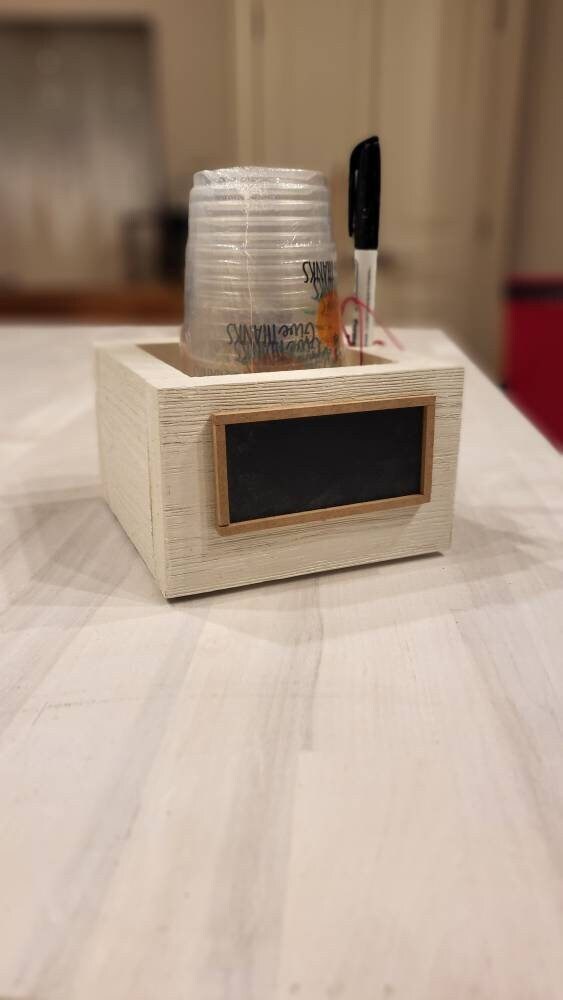 Party Holiday Solo Plastic Coffee Cup Holder with Black Marker and Chalkboard Front.