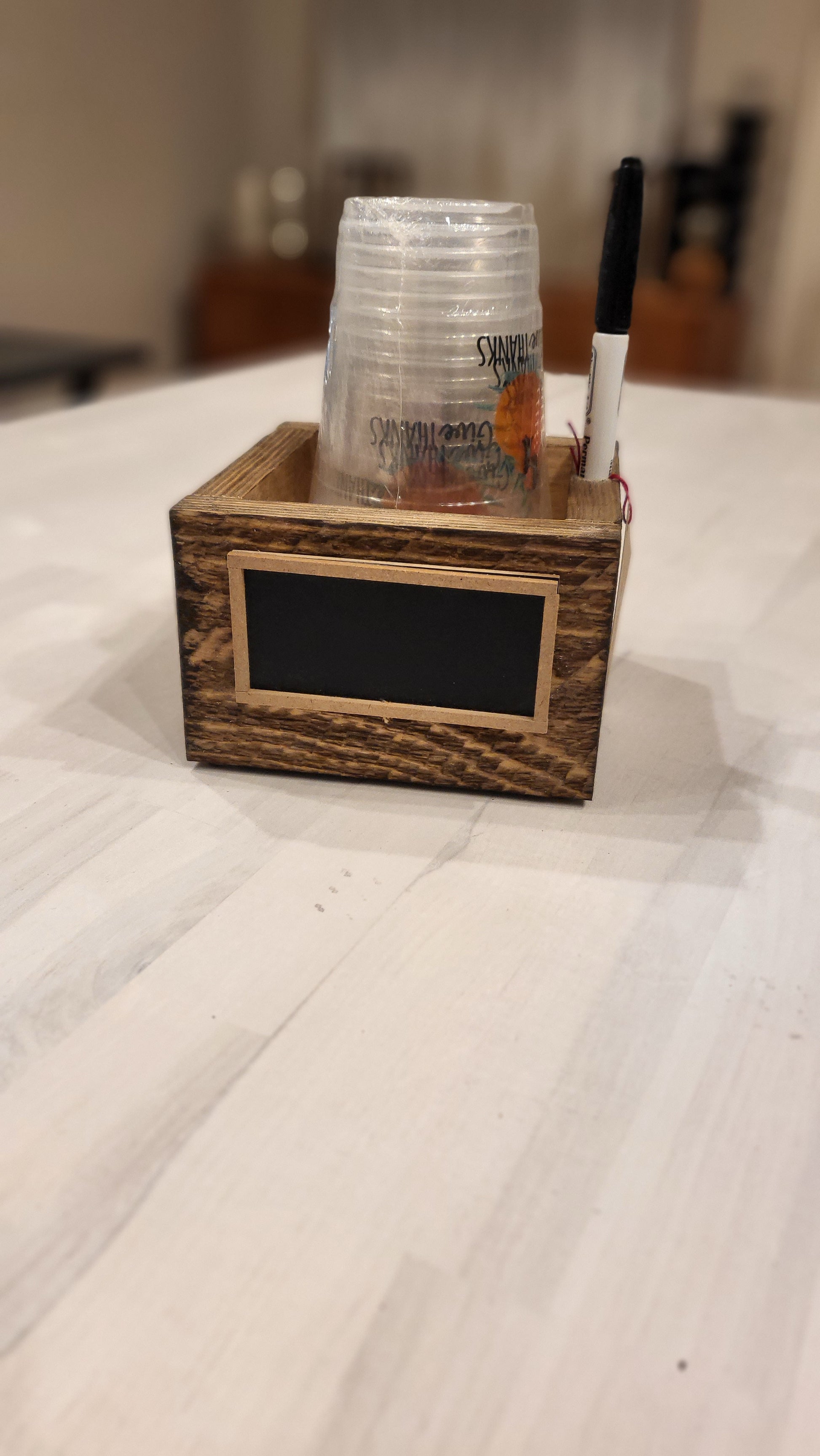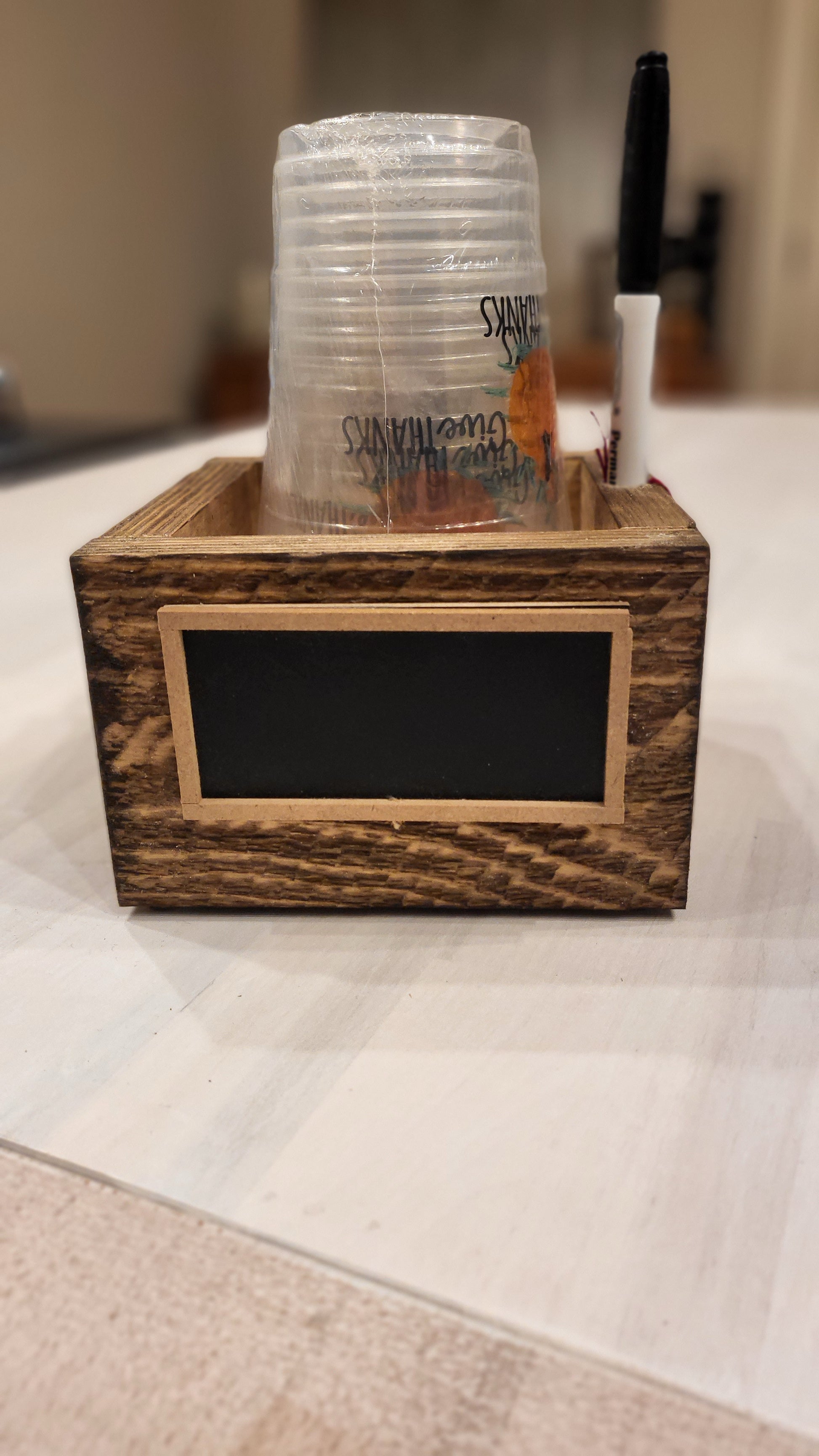Party Holiday Solo Plastic Coffee Cup Holder with Black Marker and Chalkboard Front.